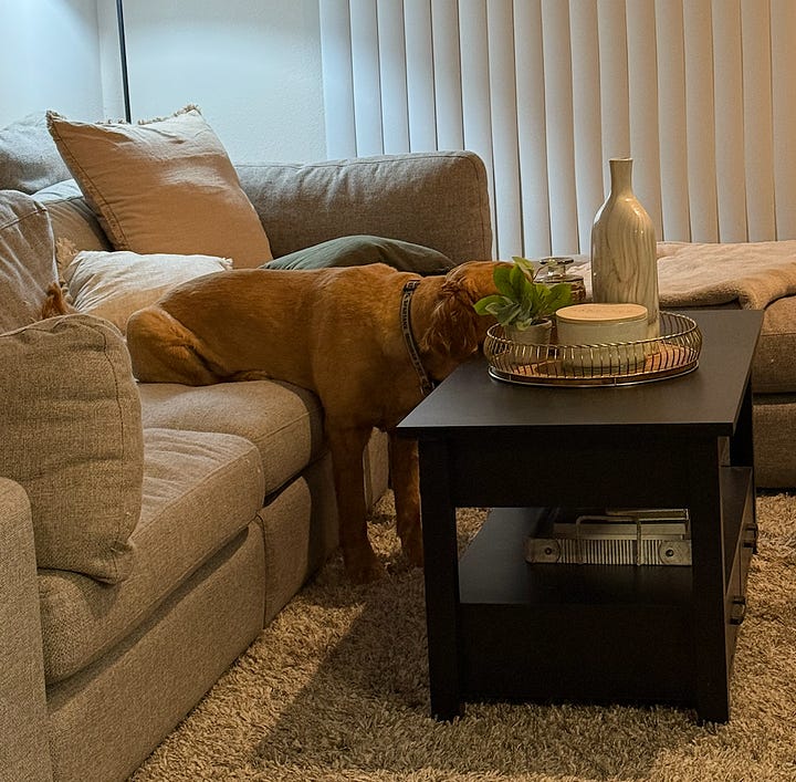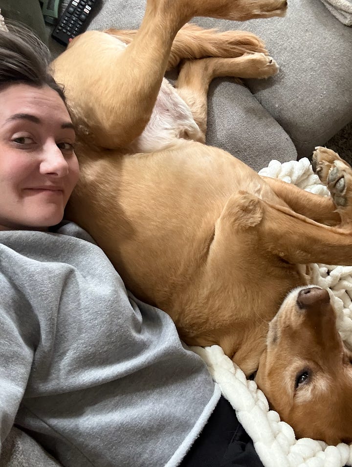 Sweet Harper loved that his mama was sick. He got mid-day cuddles and belly rubs. Harper also does the weirdest thing when he watches TV (yes, he watches TV…) and sits with his booty on the couch, his paws on the ground, and his head on the coffee table. He’s been doing it since he was a puppy, but I got a picture of it for your enjoyment!